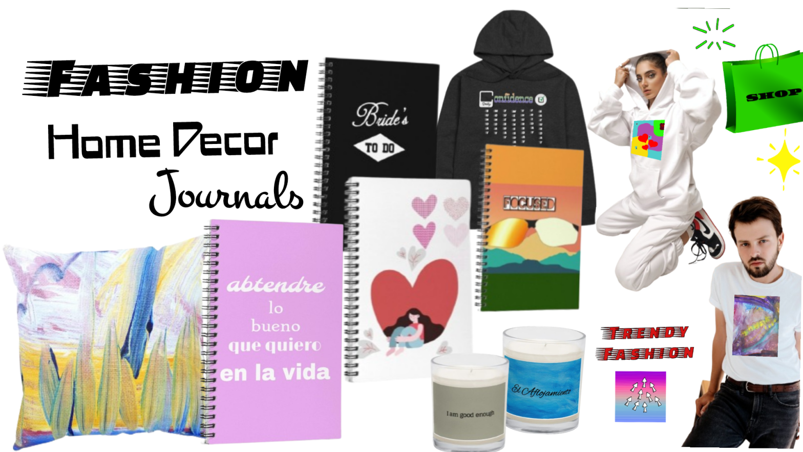 Find candles and journals with themes in English and Spanish for meditation, reflection, and journal writing in the Shop. Several journals and throw pillows include original artwork. There are dog moms t-shirts, love theme, inspirational, self-confidence and side hustle Tees and hoodies, wedding preparation journals for the bride-to-be, bridesmaids, groom and groomsmen. All the items in the Shop are uniquely designed and are terrific gifts all year round for birthdays, weddings, anniversaries, Valentine’s Day, graduation, holidays and most any occasion.